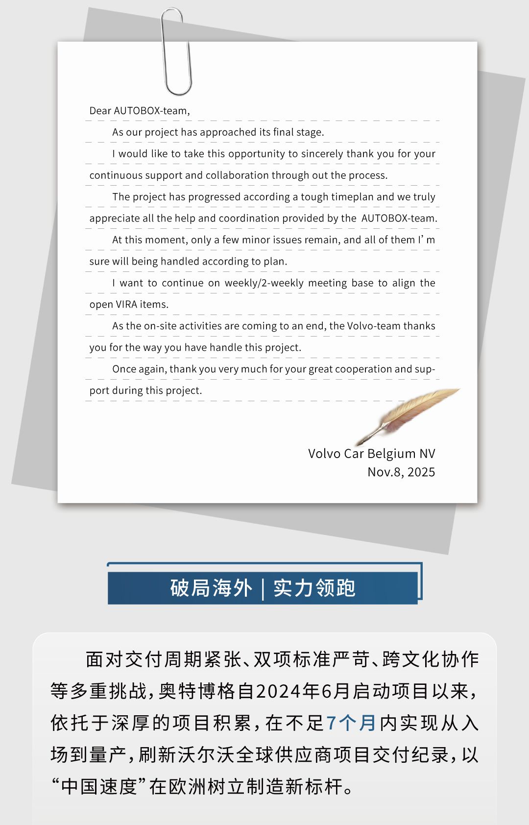 海外载誉 实力领跑|奥特博格收到来自沃尔沃汽车的感谢信